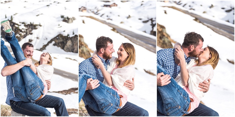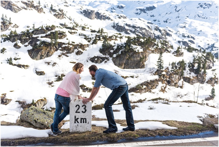 Sabrina und Christoph waren sofort dabei, als ich sie für ein Foto-Shooting anfragte. Auf fast 2000 M.ü.M hatten wir die Strasse ganz für uns alleine, da sie noch geschlossen war. Am Morgen war alles noch in Nebel gehüllt und am Abend hatten wir wunderbares Licht zum Fotografieren. Es war einfach der Hammer! Ich liebe es wenn die Sonnen in den Schnee scheint und die Berge zum Leuchten bringt.