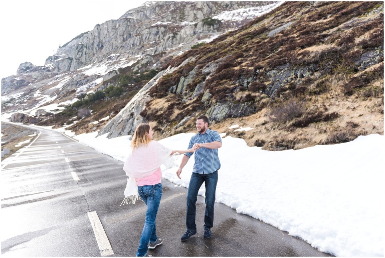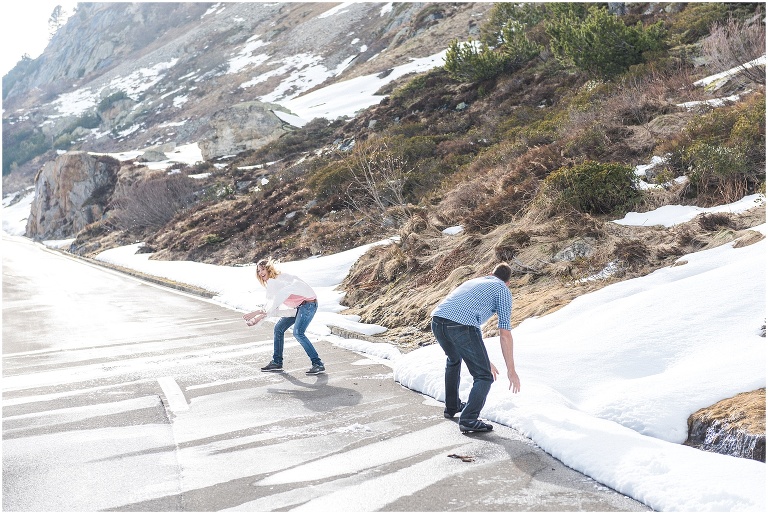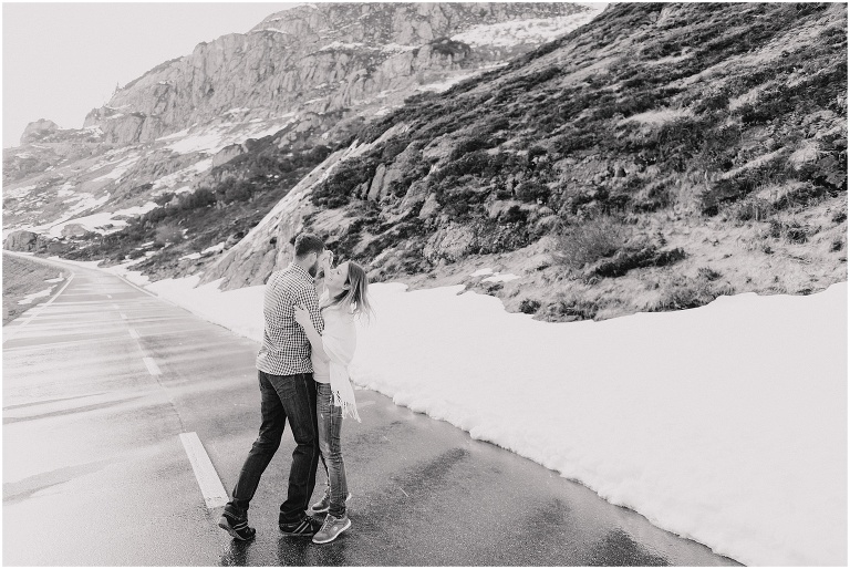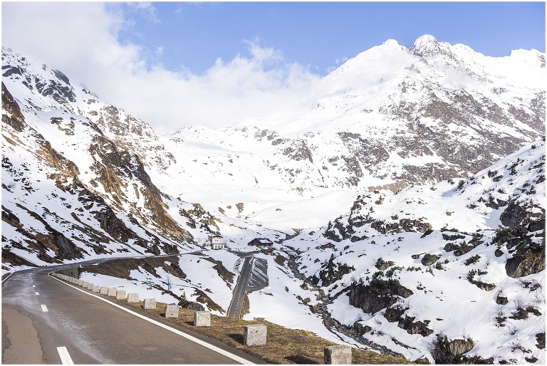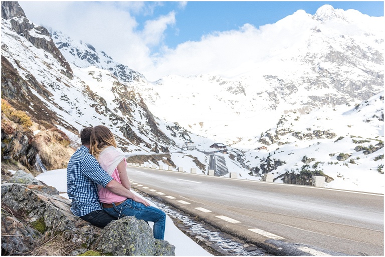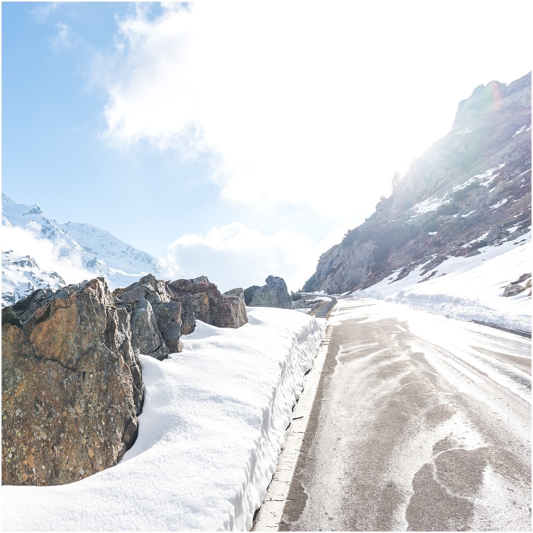 Eine einsame Passstrasse, ein verliebtes Paar und etwas Schnee, schon bin ich happy.