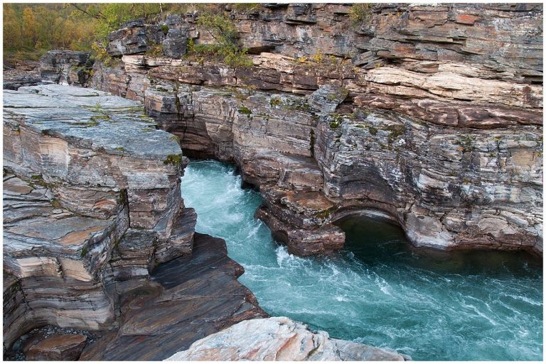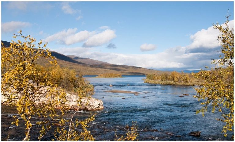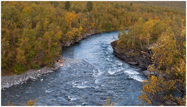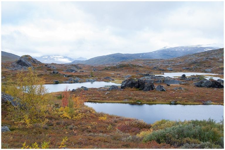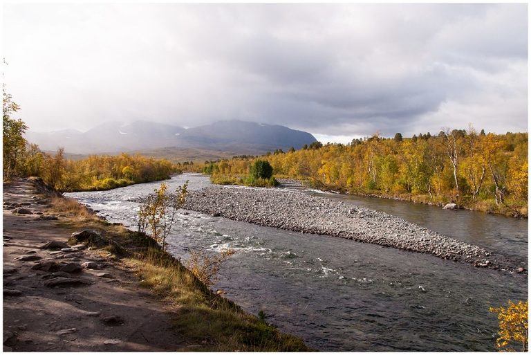 Die erste Etappe führte uns 14 km lang durch Birkenwälder, vorbei an Seen, Flüssen und türkisfarbigen Schluchten nach Abiskojaure. Begleitet von Sonne, Regen und Wind zeigte sich das Wetter und die Landschaft schon am ersten Tag vielseitig! Wanderwege kreuzten sich mit Schneetöff-Wegen. Ich war stolz und beeindruckt, als wir in Abiskojaure ankamen. Der erste Tag mit ca. 12kg Gepäck auf dem Rücken war geschafft!