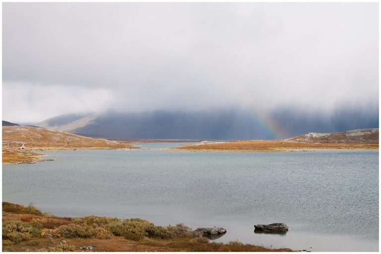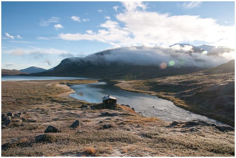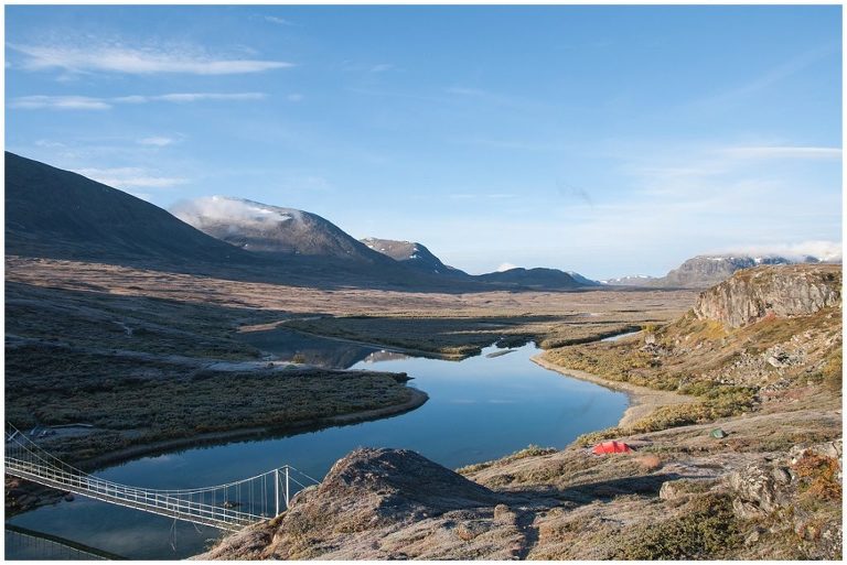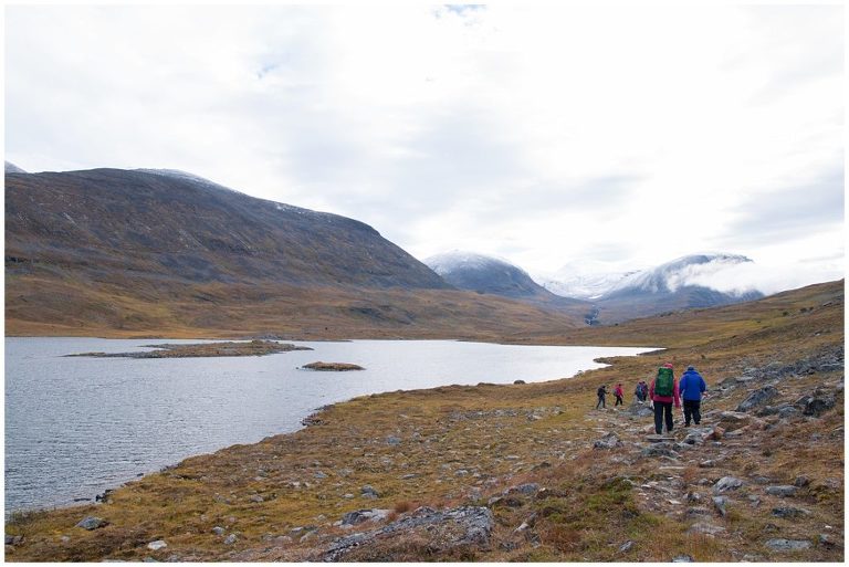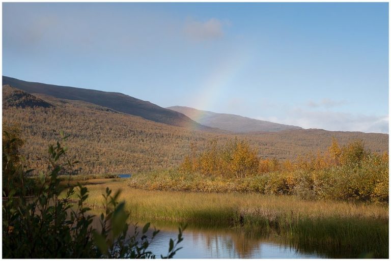 Als ich meine Hüttenschuhe am nächsten Morgen ein letztes Mal in den Rucksack packte, war es da dieses Gefühl den falschen Weg zu beschreiten. Ich wollte noch nicht nach Hause und einfach weiter wandern und diese wunderbare Landschaft und das Leben aus dem Rucksack festhalten! Dieses Gefühl sollte mich noch drei Wochen lang begleiten. Erst als ich beschloss, irgendwann nochmal eine Trekkingtour durch das schöne Schwedische Lappland zu machen, ging es mir besser und ich fühlte mich wieder wohl zu Hause. Die letzte Etappe von Abiskojaure nach Abisko zeigte sich von seiner schönsten Seite bei herrlichem Sonnenschein. Wir gingen fast den selben Weg zurück wie wir am ersten Tag gekommen waren. Nach einem letzten Rast an einem verträumten See, kamen wir schon kurz vor Mittag in Abisko an.