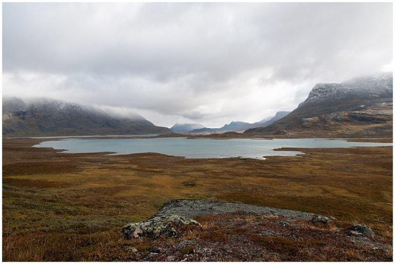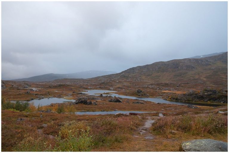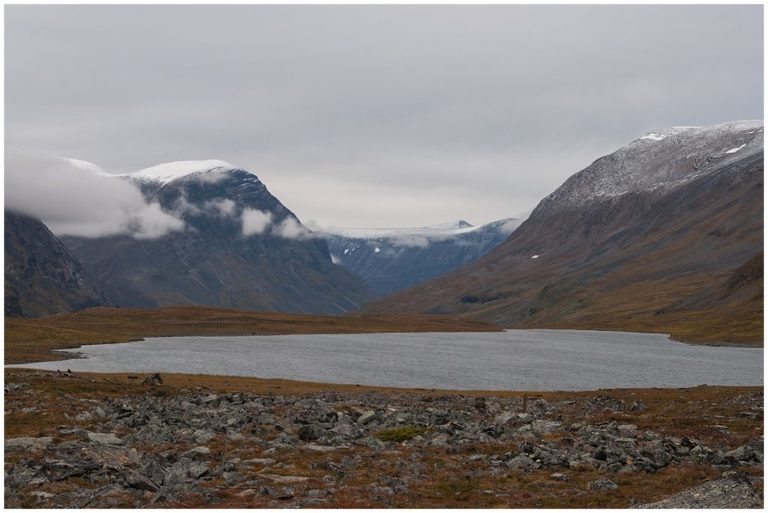 Am vierten Tag starteten wir früh, um bereits gegen die Mittagszeit in Unna Allakas zu sein. Wir verliessen den Kungsleden und wanderten über einen einsamen Pass. Die Landschaft war karg, steinig und beeindruckend unberührt. Wir durchquerten einen breiten Fluss, welcher wie ein Bild eines talentierten Malers aussah. Es war eine wunderschöne Wanderung und nur ca. 14km lang, doch es regnete in Strömen. Leider war meine neue Regenhose nicht dicht und als ich auch noch ausrutschte und auf meinem Ellenbogen landete, war meine Stimmung am Tiefpunkt angelangt. Nach einer warmen Suppe und Shoppingtour im Hüttenladen mit ganzen zwei Regalen besserte sich meine Laune schnell wieder! Seit diesem Sommer gab es in Unna Allakas auch eine Sauna mit einem tollen Ausblick auf mehrere kleine Seen in Richtung Norwegen, die Grenze war nicht weit entfernt.
