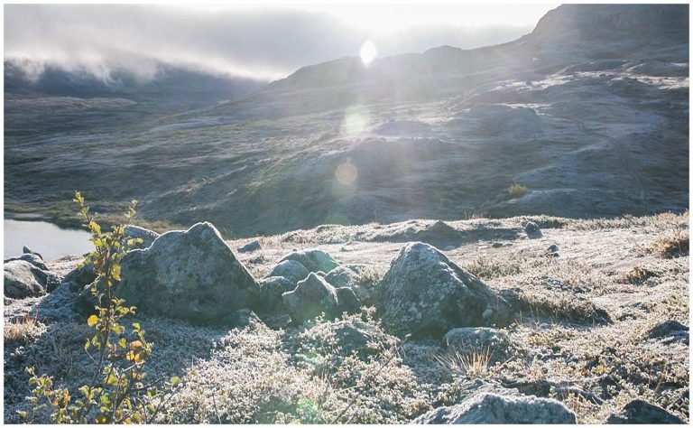 Am zweiten Tag nahmen wir ca. 21 km unter unsere Füsse bis nach Alesjaure. Es war ein langer Weg und viel zu früh konnte man die Hütten schon sehen, doch sie kamen einfach nicht näher. An diesem Tag wechselte das Wetter wieder mehrfach und einen kurzen Moment schneite es sogar. Ich liebe das Wetter in all seinen Formen. Es war ein toller Tag wir kamen über die Baumgrenze und konnten Rentiere sehen und am Abend die Nordlichlichter, einer meiner Lieblingsmomente der Woche. Alle waren ganz aufgeregt und standen staunend unter dem Sternenhimmel und bewunderten dieses Lichterspiel am Himmel. Ich war fasziniert!